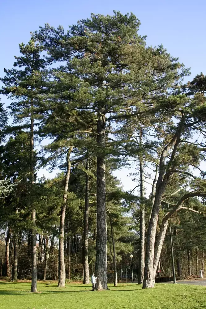 Сосна чорна зростає до 30 м заввишки. Має темно-зелені, трохи